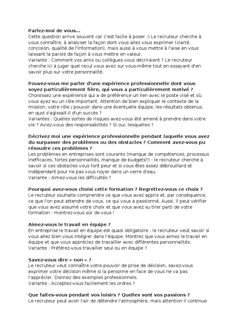 Entretien Embauche Questions Reponses Entretien Embauche Questions Entretien Embauche Question Reponse Entretien